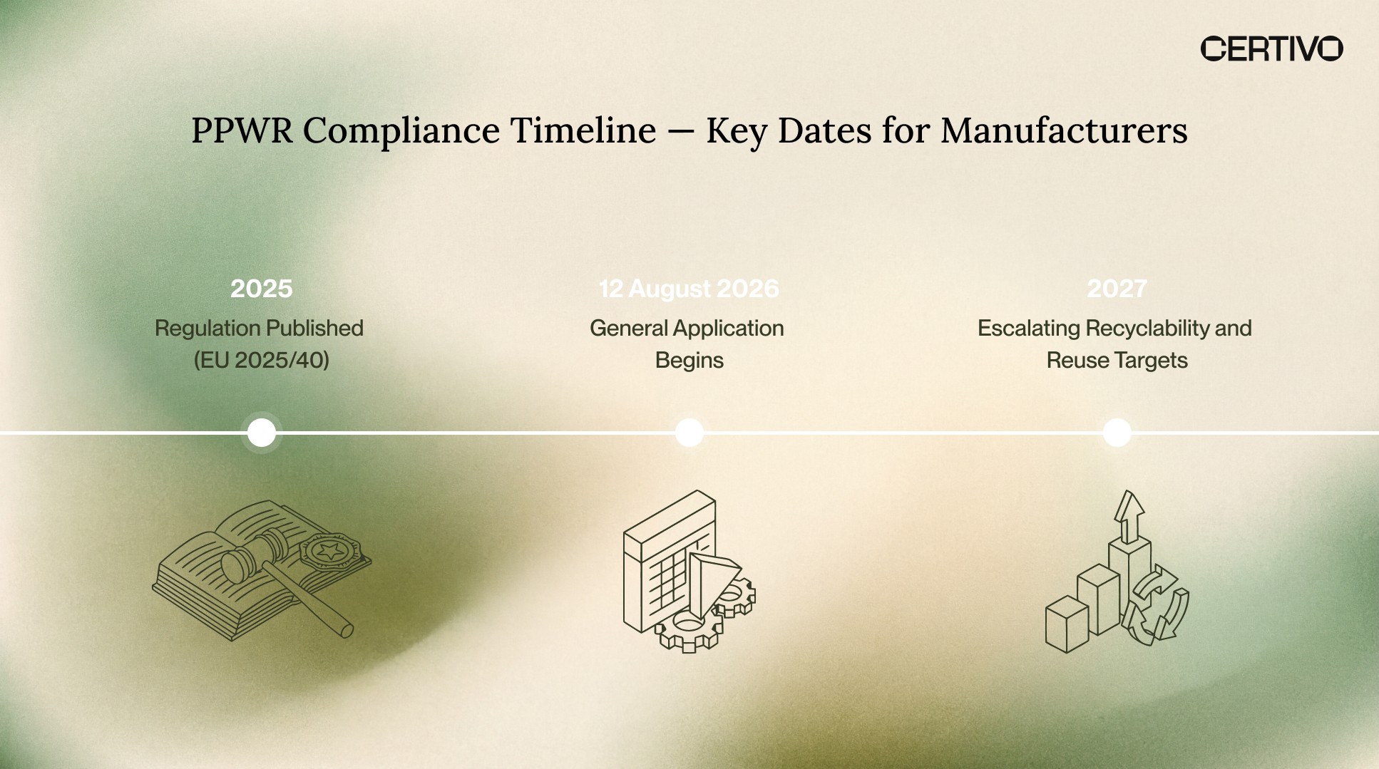 EU packaging waste regulation PPWR compliance timeline 2026 for manufacturers