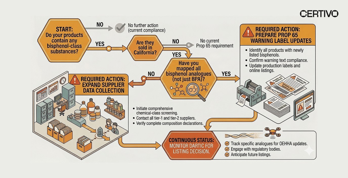 For manufacturers selling products into California across food packaging, medical devices, construction materials, consumer goods, electronics, and automotive sectors, the Proposition 65 bisphenol class review demands immediate action: identify all bisphenol-class substances in your products and supply chain, expand supplier data collection beyond BPA, evaluate non-bisphenol alternatives, and prepare for potential warning label requirements.