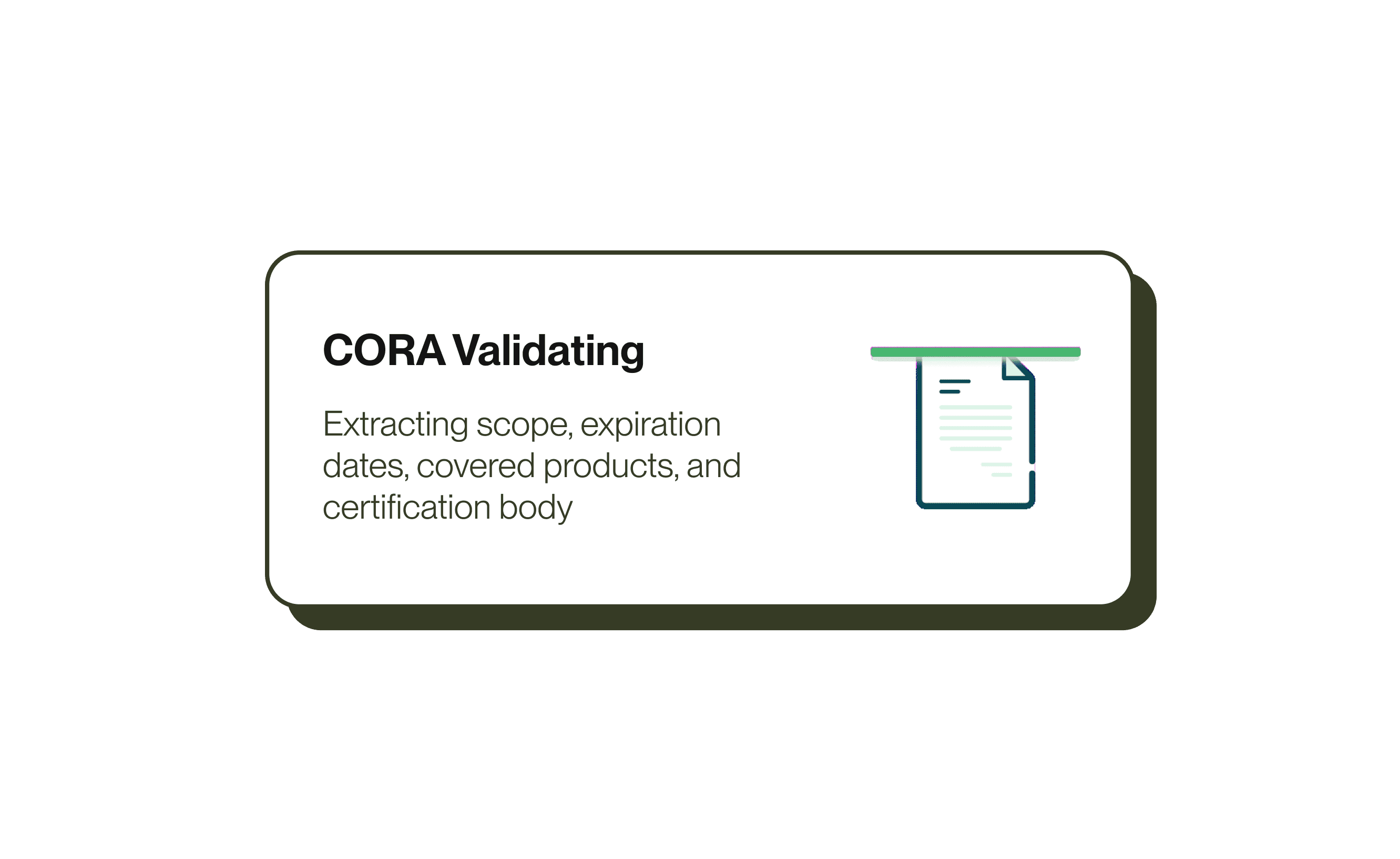 CORA reads supplier certificates like your best analyst—extracting scope, expiration dates, covered products, and certification body. Issues flagged automatically. You manage exceptions, not spreadsheets. AI-native compliance automation at scale.