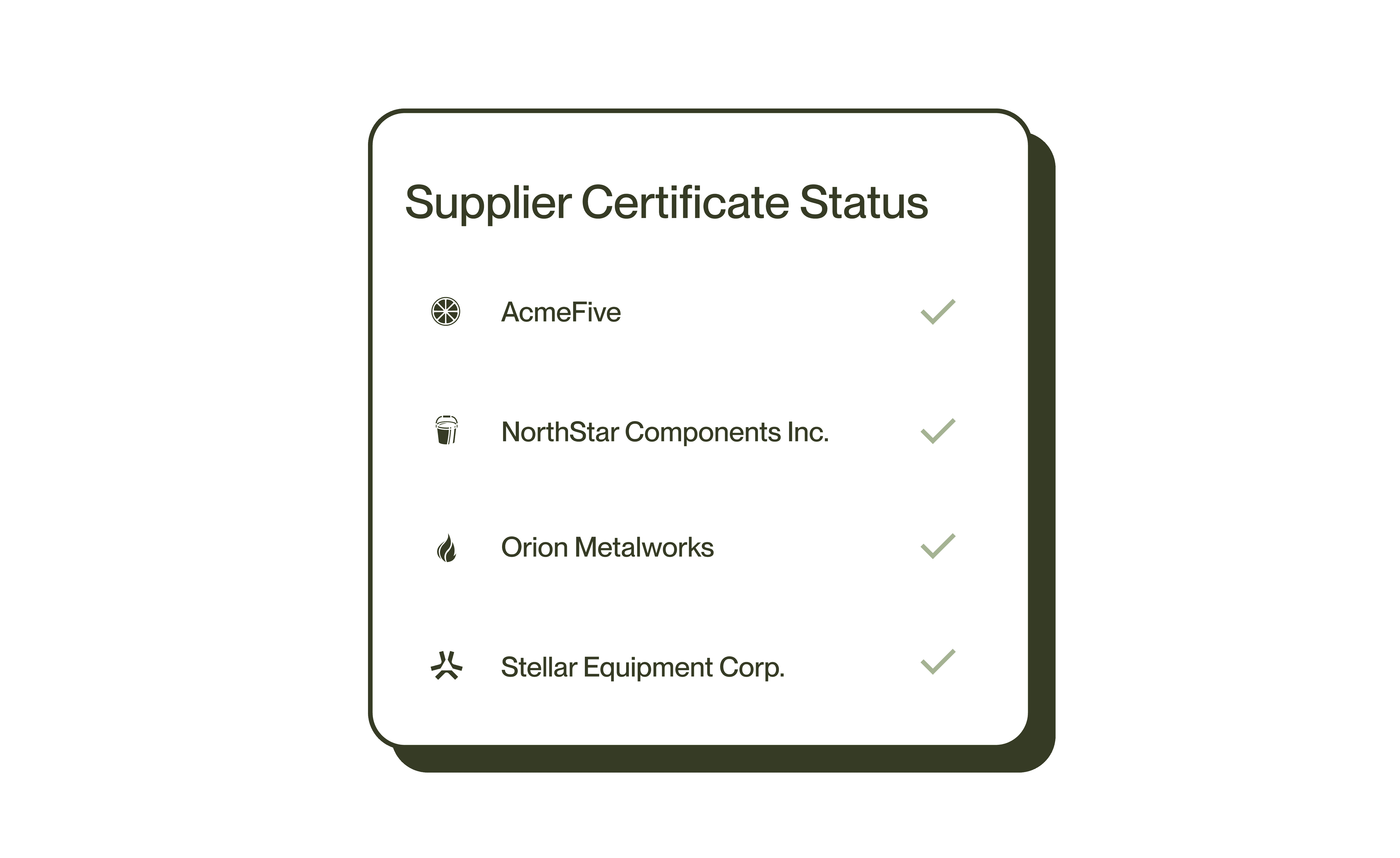 One Supplier Certificate. Five Regulatory Frameworks Validated. Instantly.