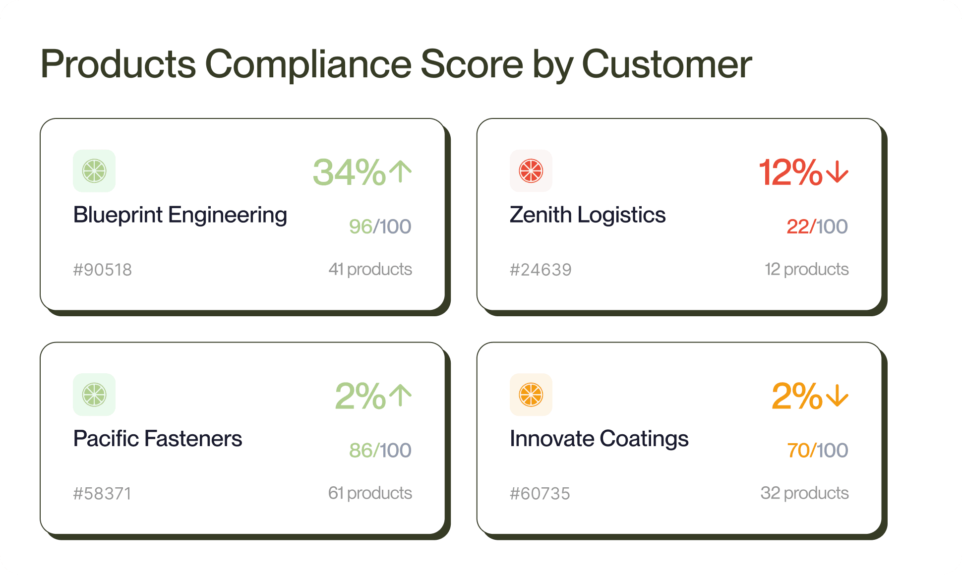✅ Per-customer compliance scores with drill-down to parts